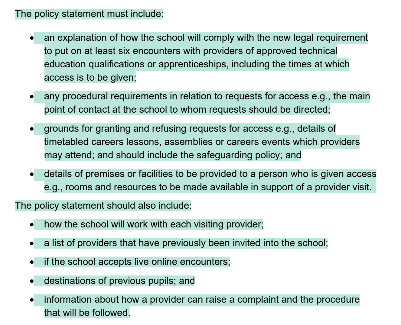 - The policy should be published either alongside or separately to the school careers programme on the school website.