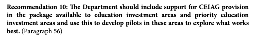 - We agree, we're already doing lots of things especially in Educational Investment Areas (EIAs)