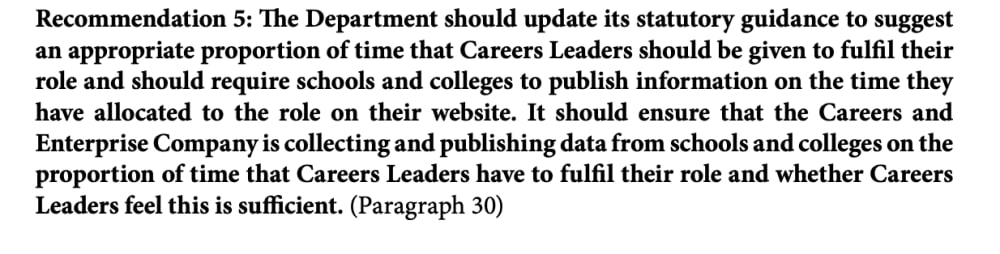 - Every school must have a Careers Leader who is SLT or reports to SLT and schools are urged to support their careers team.