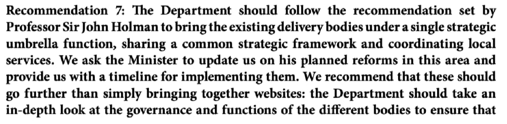 - We agree with Sir John Holman, there needs to be more coherence between all the organisations delivering CEIAG support and we intend to explore that further.