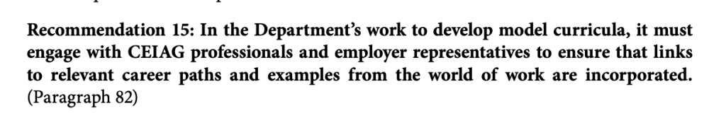 - Embedding Careers into the Curriculum - Government response to the Education committee recommendations for CEIAG Pt 4