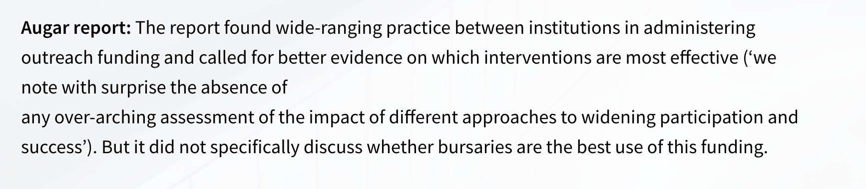 I'm not an expert in funding but I'm wondering what effect the Augar review will have on the amount of support that universities give to schools to deliver their CEIAG.